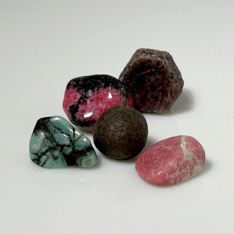 Moqui Marbles, Rhodonit, Rubin, Smaragd, Thulit.