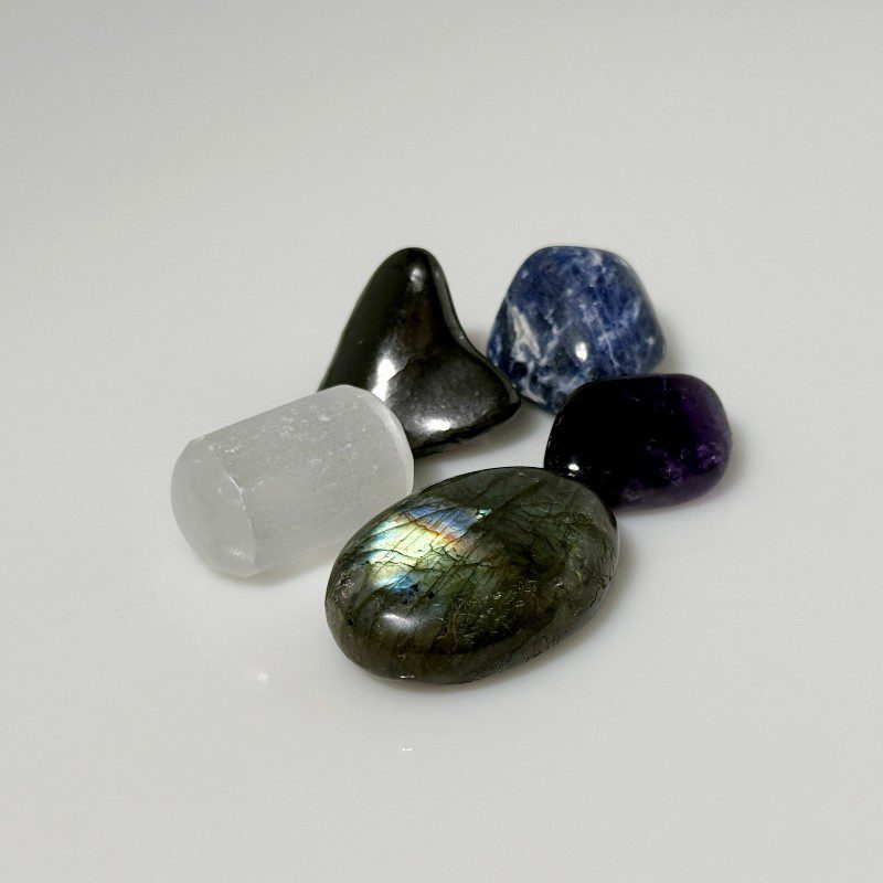 Ametyst, Labradorit, Selenit, Shungit, Sodalit.